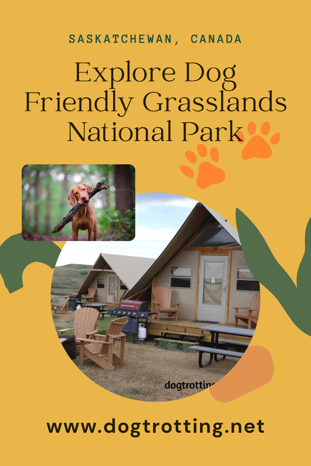 Grasslands National Park in Saskatchewan, Canada, is dog-friendly, including select glamping sites and Badlands dino fossil area.